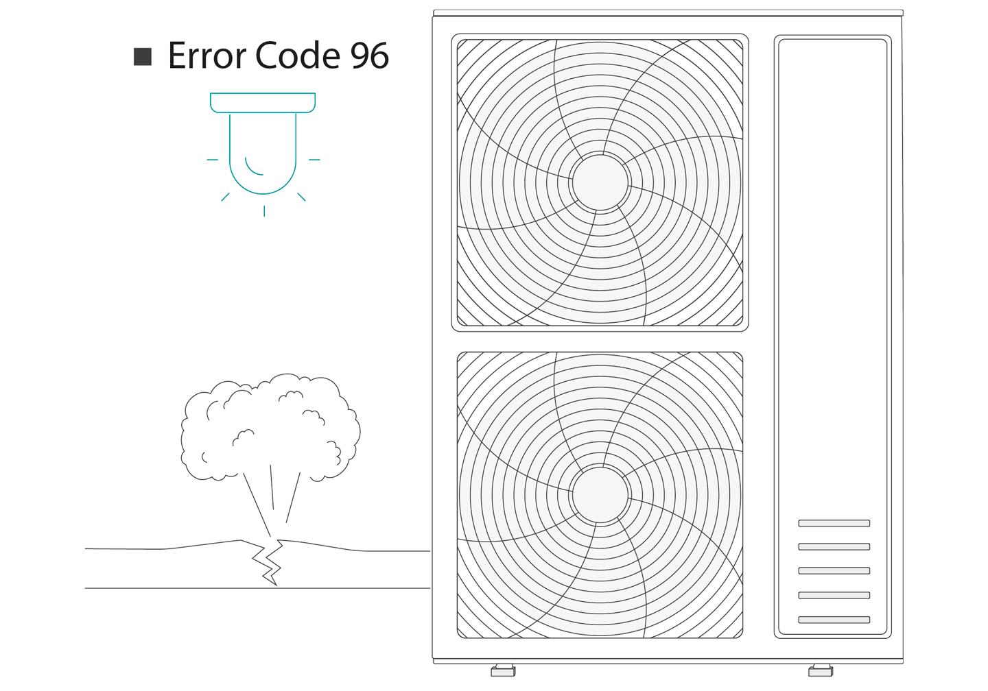 Das System kann eine Kältemittel-Leckage erkennen, indem es die Parameter permanent überwacht und ggf. Anomalien feststellt. Es sendet den Fehlercode E96 und stoppt den Betrieb, um einen sicheren Betrieb der R32-Klimaanlagen zu gewährleisten.