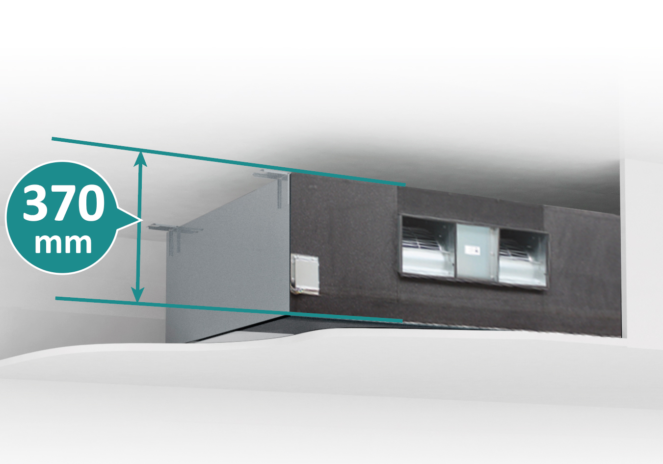 Mit der geringen Bauhöhe von nur 370 mm eignen sich die AVA-Kanalgeräte für die Montage in Zwischendecken mit wenig Aufbauhöhe (AVA-30 und AVA-48).