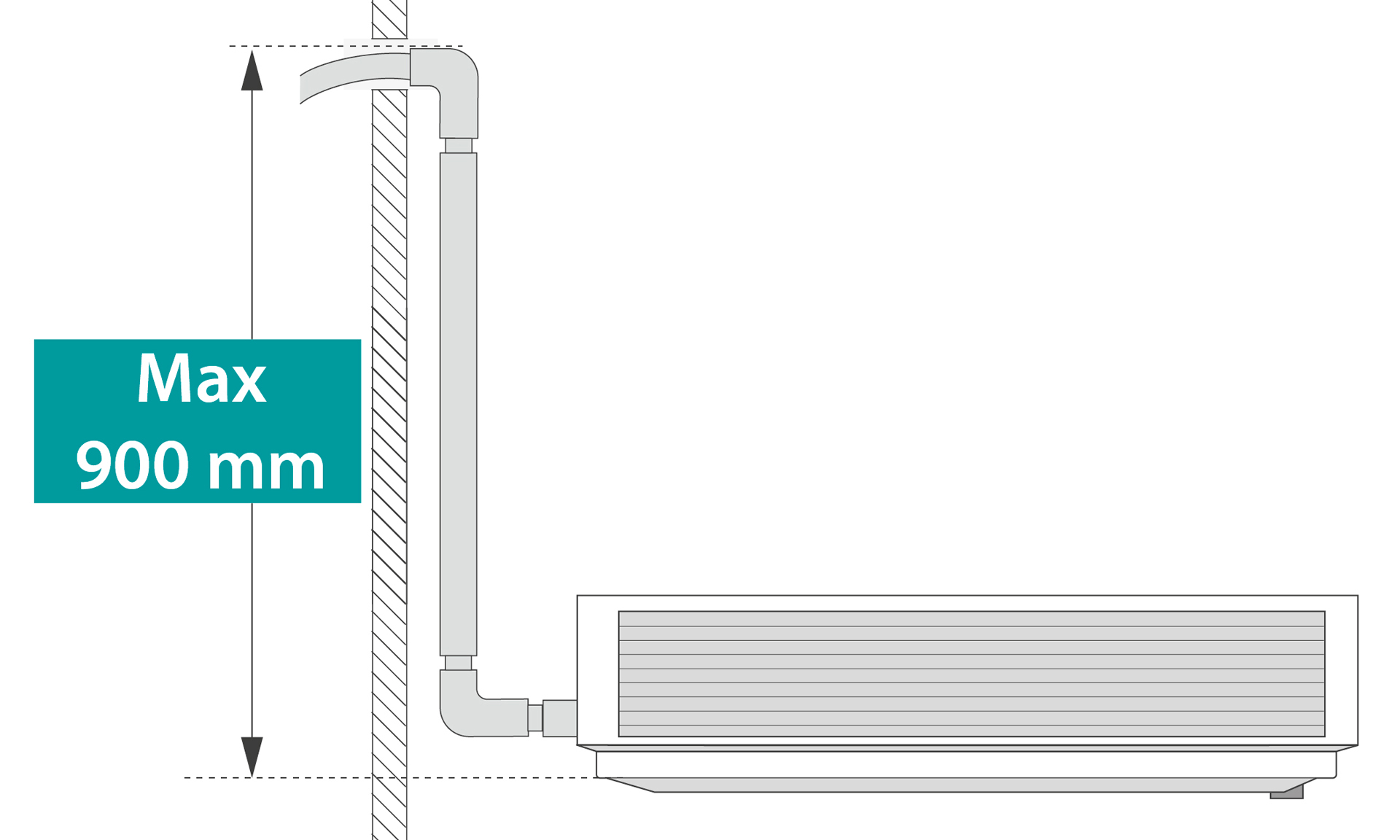 Serienmäßig integrierte DC Kondensathebepumpe mit maximaler Ablaufleistung bis zu 900 mm Höhe. (Nur bei Modellen AVD-07 bis 54)