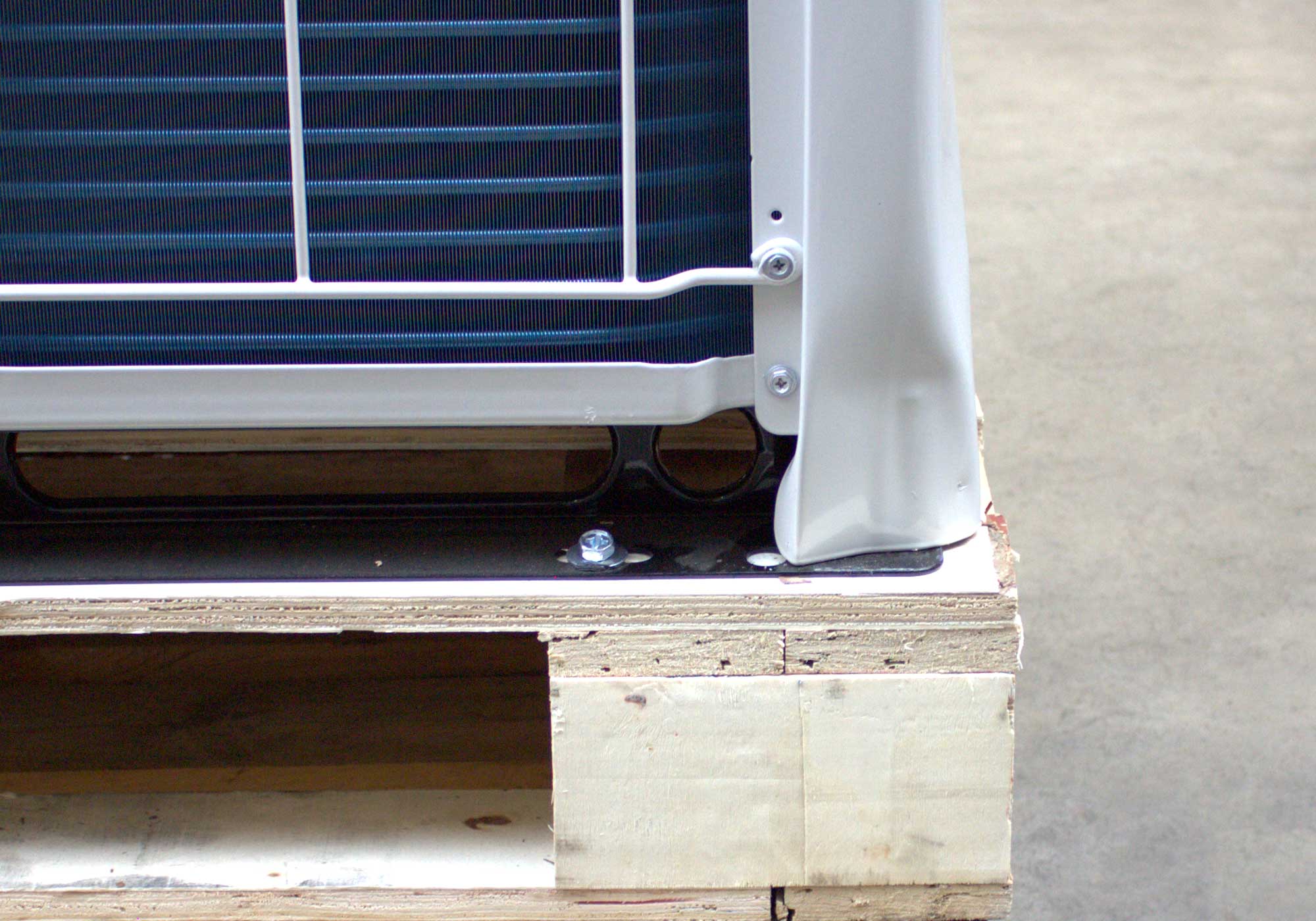 Der luftgekühlte Wärmeübertrager besteht aus Kupferdrallrohren mit speziell geformten Aluminiumlamellen, die einen effizienten Wärmeaustausch und eine einfache Reinigung ermöglichen. Die innen gerillten Kupferrohre sorgen für einen geringen Luftstromwiderstand und verbesserte Wärmeübertragung. Der Wärmeübertrager ist auch im Winter weniger anfällig für Eisbildung, was die Heizleistung verbessert. Er ist korrosionsbeständig und verfügt über ein Schutzgitter.