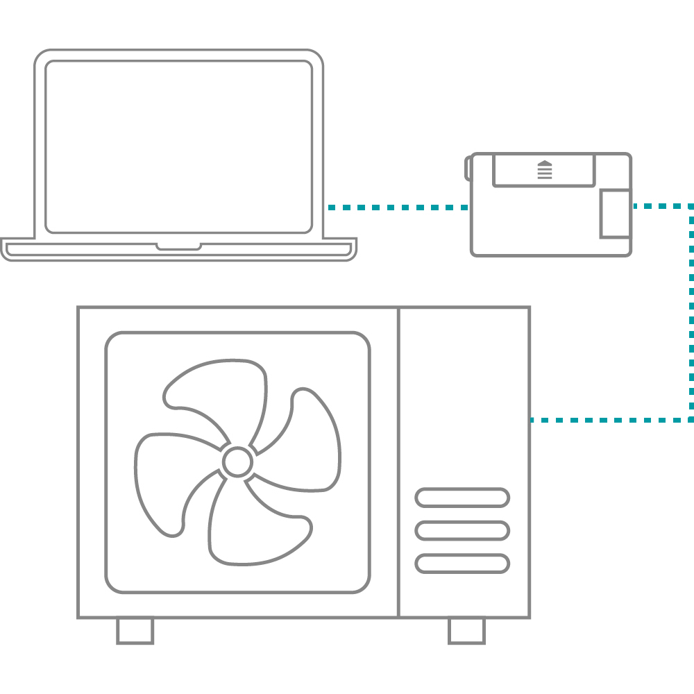 Zum Lieferumfang gehören eine Kommunikations-Adapterbox, ein USB-Kabel (1 m), ein USB-Verlängerungskabel (4 m) sowie ein Kommunikationskabel mit 4- und 5-adrigem Anschluss. Der Anschluss an die Steuerplatine des Außengeräts erfolgt schnell und unkompliziert über das mitgelieferte Kommunikationskabel. Die benötigte Software zur Nutzung des Adapters stellen wir Ihnen bequem in unserem Download-Bereich zur Verfügung.