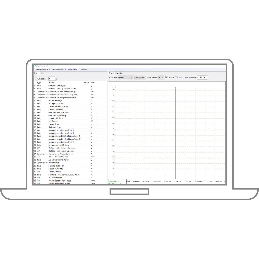 Der Hi-Checker ist ein leistungsstarkes Diagnose- und Wartungstool, das speziell für Klimageräte von Hisense entwickelt wurde. Er eignet sich für RAC-, PAC- und FreeMatch Multisplit-Systeme und ermöglicht die umfassende Überwachung aller Betriebsparameter – mit einer übersichtlichen Visualisierung am PC. Durch die Analyse der Betriebsdaten und deren Veränderungstrends können Fehler schnell erkannt und der Gerätestatus tiefgehend beurteilt werden.