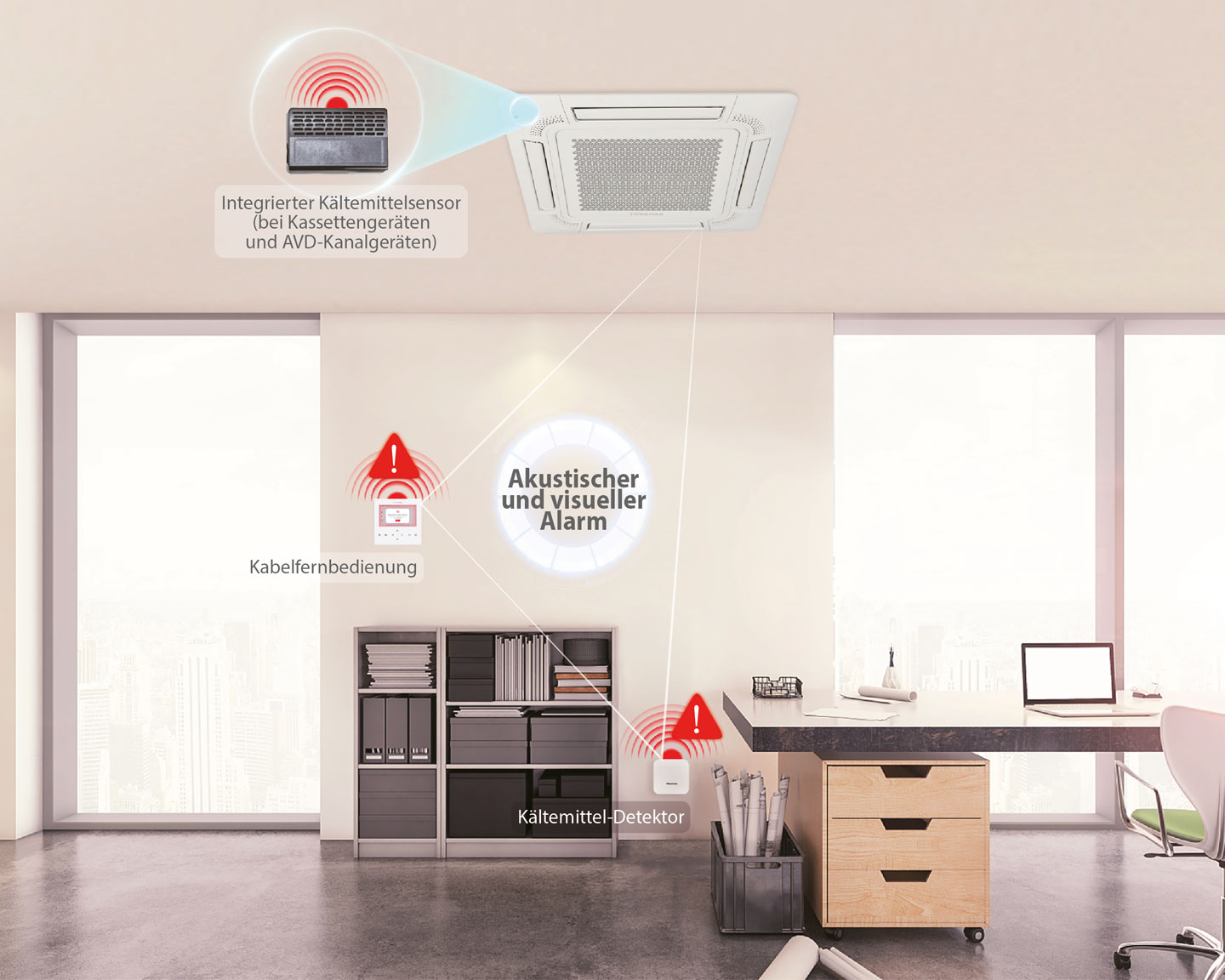 Hisense hat ein umfassendes Sicherheitskonzept für den Einsatz des Kältemittels R32 in VRF-Systemen entwickelt. Durch innovative technische Lösungen stellt Hisense sicher, dass die Verwendung von R32 in VRF-Systemen nicht nur umweltfreundlich, sondern auch sicher ist. Diese Maßnahmen tragen dazu bei, Risiken zu minimieren und höchste Standards wie die DIN EN378 in der Kälte- und Klimatechnik zu erfüllen.