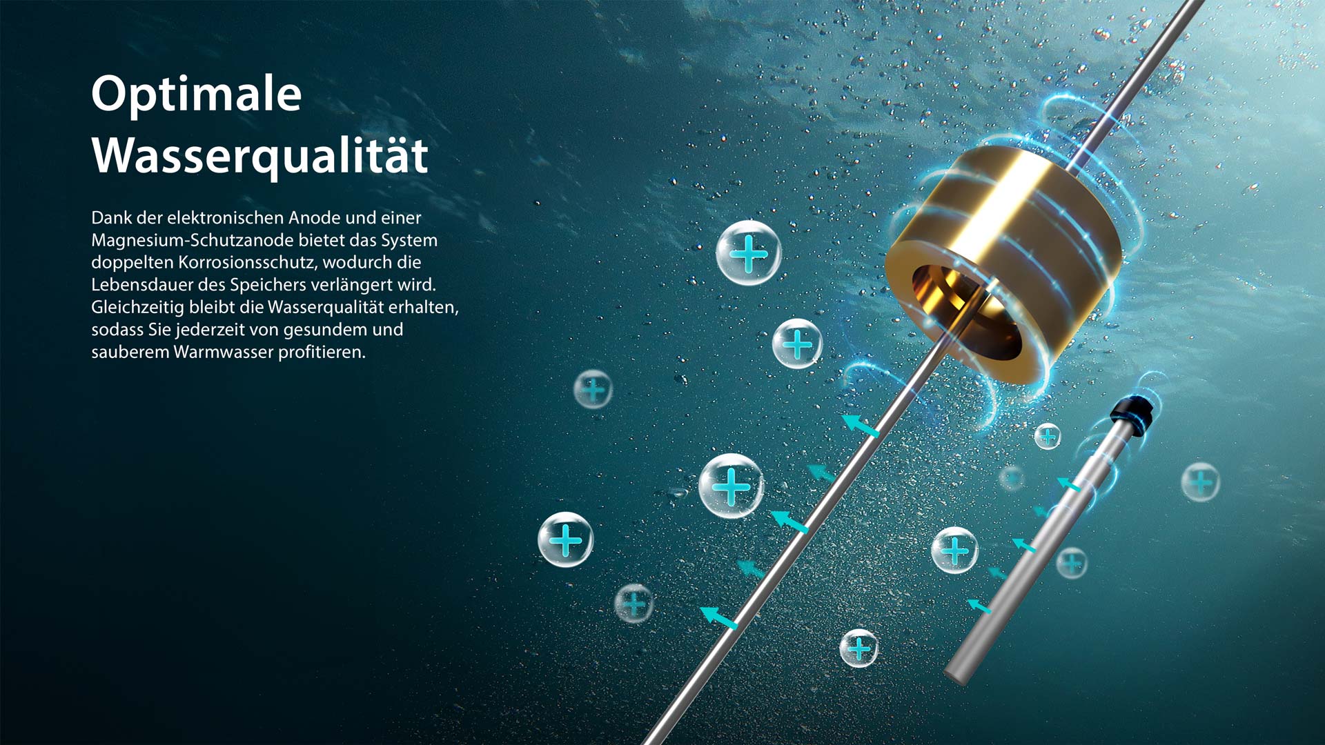 Dank der elektronischen Anode und einer Magnesium-Schutzanode bietet das System doppelten Korrosionsschutz, wodurch die Lebensdauer des Speichers verlängert wird. Gleichzeitig bleibt die Wasserqualität erhalten, sodass Sie jederzeit von gesundem und sauberem Warmwasser profitieren.