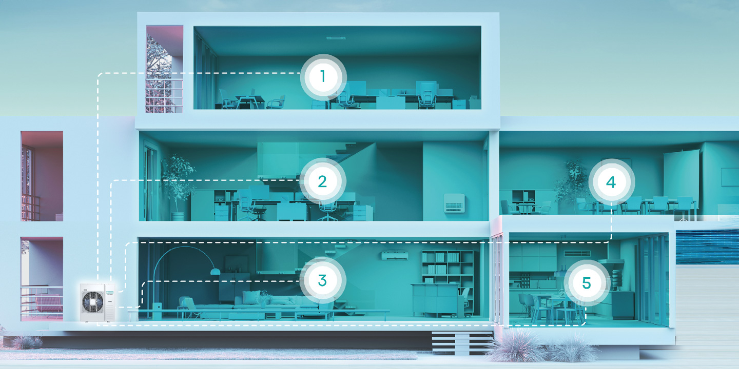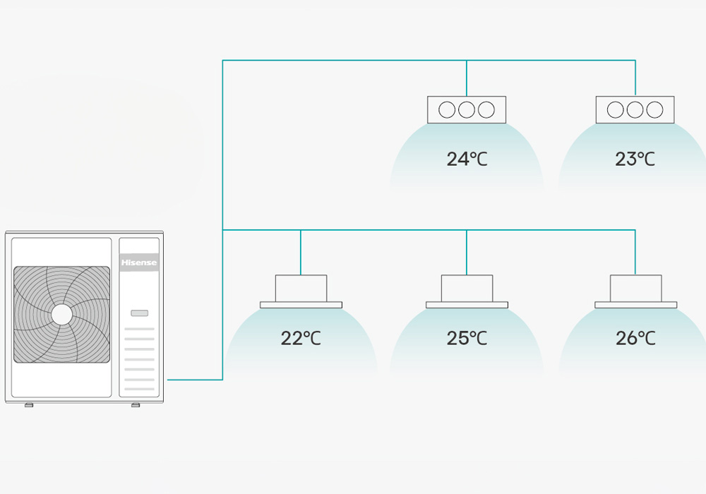 Entdecken Sie die Vorteile der Hisense Multisplitsysteme – die ideale Lösung für die Klimatisierung mehrerer Räume! Unsere Multisplitsysteme bieten Ihnen die Flexibilität bis zu 5 Innenraumgeräte über eine einzige Außeneinheit zu betreiben. Dadurch können Sie verschiedene Räume unabhängig voneinander kühlen oder heizen und individuelle Komforteinstellungen vornehmen.
