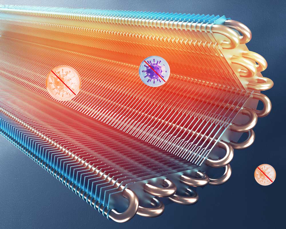 Die spezielle Anti-Bacteria Fin-Technologie mit Silberionen (Ag+) hemmt das Wachstum von Bakterien und Schimmel, wodurch ein hygienisches und gesundes Raumklima geschaffen wird. Diese fortschrittliche Beschichtung verlängert zudem die Lebensdauer des Wärmetauschers und sorgt für eine langanhaltend effiziente Leistung.