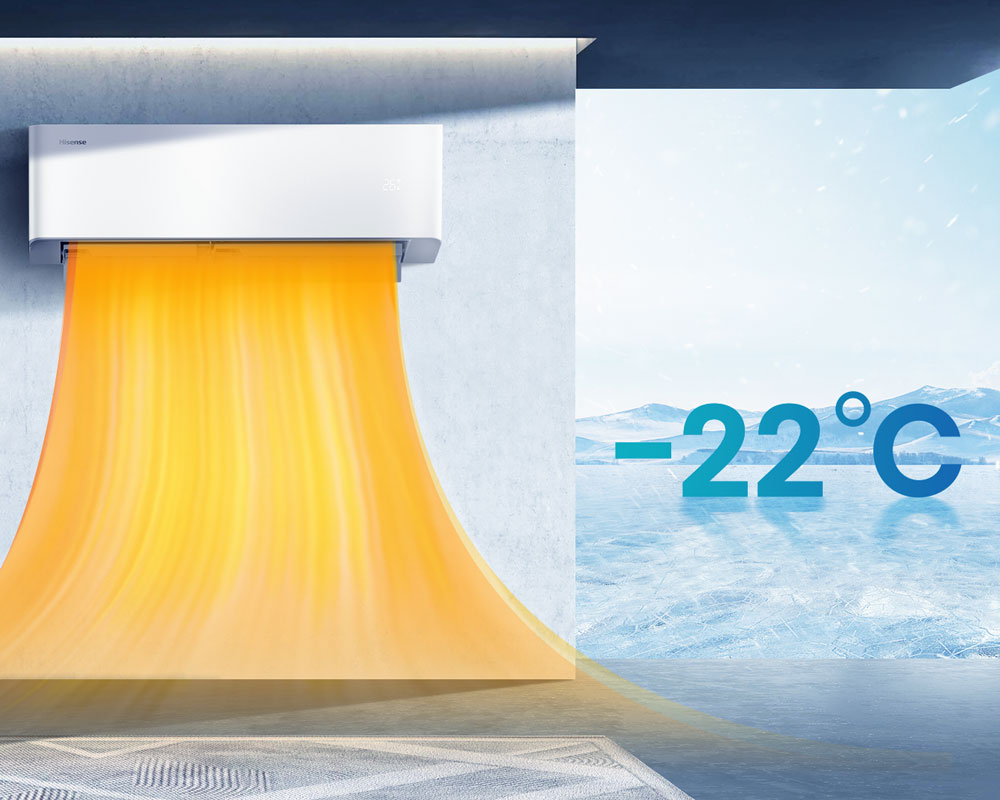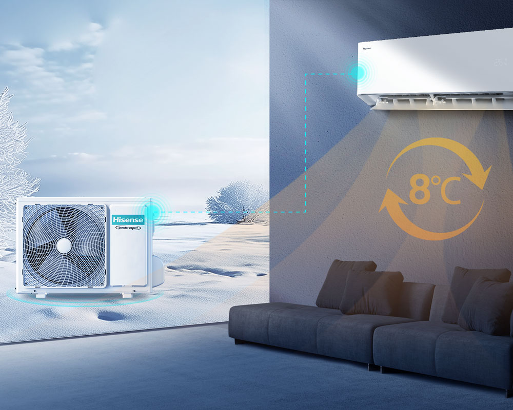 Im Heizmodus bieten Hisense Klimasysteme die Funktion des Auskühlschutzes. Werden die Räumlichkeiten im Winter nicht regelmäßig genutzt, verhindert die 8 °C Funktion das Auskühlen der Räumlichkeiten und stehende Feuchte.