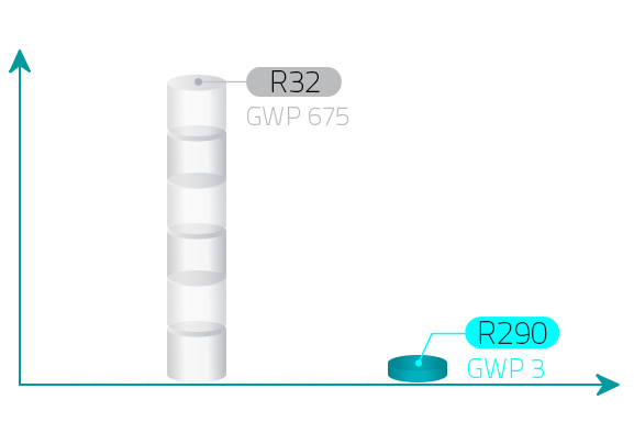 Unsere moderne „Green Comfort“-Serie setzt auf das umweltfreundliche und nachhaltige Kältemittel R290. Damit bieten wir Ihnen nicht nur eine effiziente Kühl- und Heizlösung, sondern auch einen Beitrag zum Umweltschutz. Die Verwendung von R290 ermöglicht es uns, eine grüne Alternative zu herkömmlichen Kältemitteln anzubieten, ohne dabei Kompromisse bei der Leistung einzugehen.
