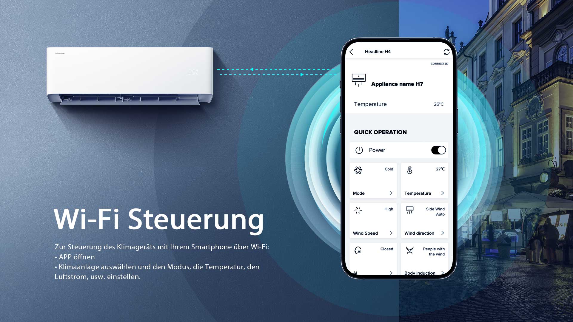 Zur Steuerung des Klimageräts mit Ihrem Smartphone über Wi-Fi: