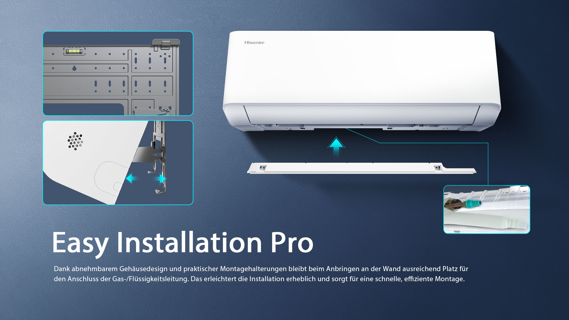 Dank abnehmbarem Gehäusedesign und praktischer Montagehalterungen bleibt beim Anbringen an der Wand ausreichend Platz für
