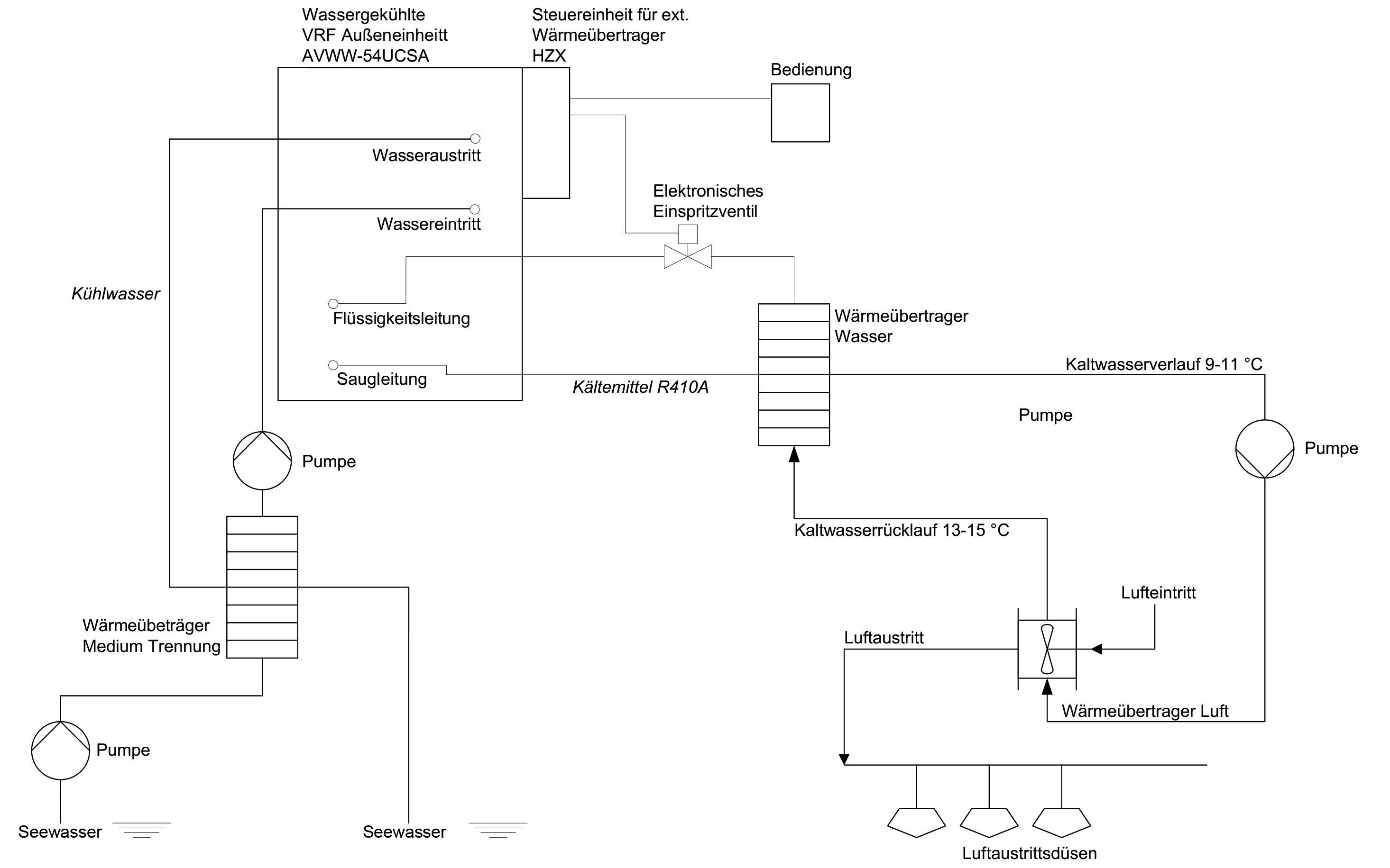 In diesem Fall bei der Klimatisierung eines Server- und Technikraumes galt es den folgenden Anforderungen gerecht zu werden: Die abzuführende Wärmelast beträgt im Maximum 6,5 kW, eine Aufstellung einer herkömmlichen Außeneinheit ist nicht möglich, ein zentrales Kaltwassernetz im Gebäude ist vorhanden, und, und, und...