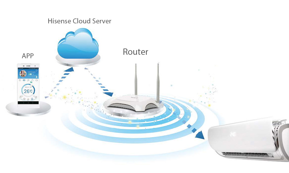 Steuern Sie Ihre Klimaanlage von überall mit Ihrem Smartphone. Die “Smarte Regelung“ von Raumklimasystemen im privaten und gewerblichen Bereich nimmt immer größeren Stellenwert ein. Hisense bietet mit der “Hi-Smart Life“ App für iOS und Android eine kostengünstige Möglichkeit der intuitiven Bedienung von Klimasystemen. Parallel zur serienmäßigen Infrarotsteuerung, oder auch optionalen Kabelfernbedienung, ermöglicht der Einsatz der App das gesamte Spektrum der Bedienmöglichkeiten. ...