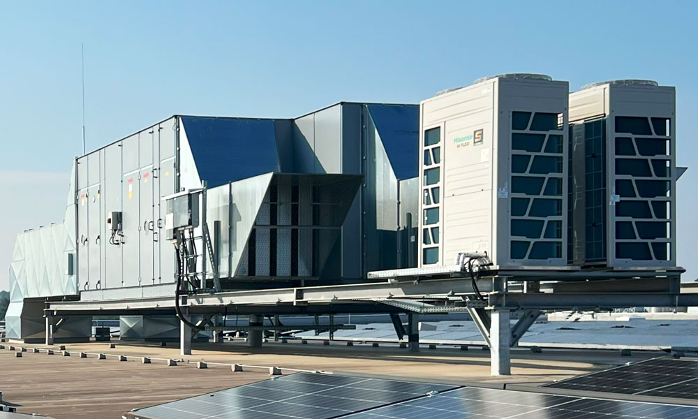Mit einer Gesamtleistung von 4.253 kW und einer versorgten Luftmenge von rund 1.088.500 m³/h wurde eines der größten in Europa realisierten Hisense VRF-Systeme installiert. Insgesamt kamen 80 Außengeräte ...