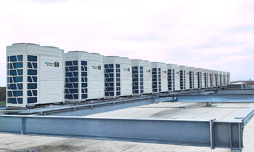 - Zwei weitere RLT-Anlagen, bestückt mit jeweils vier VRF-Außengeräten, bringen eine zusätzliche Kälteleistung von 480 kW.