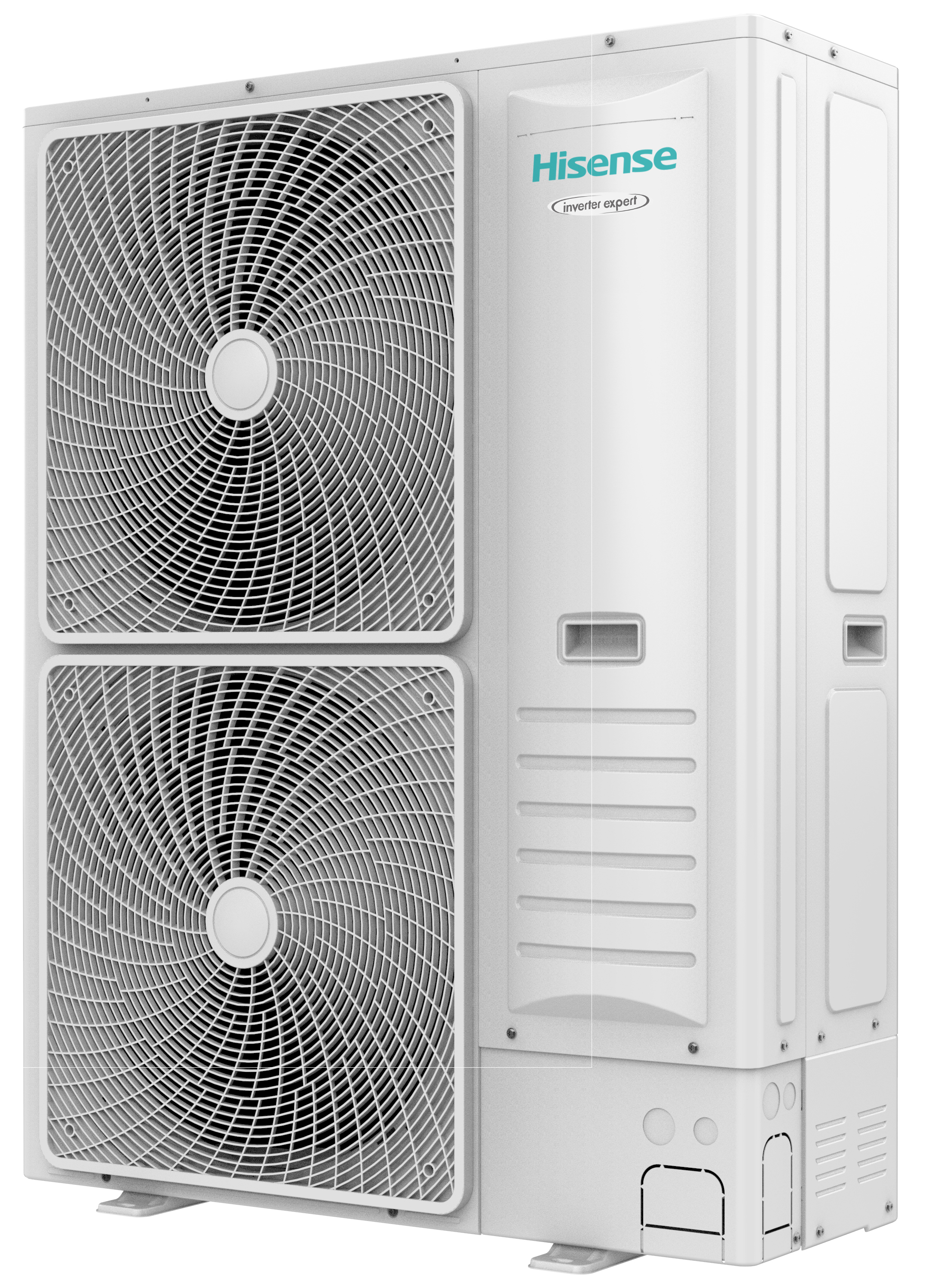 Die Hisense Außeneinheiten der PAC Klimageräte Serie AUW wurden speziell für gewerbliche Anwendungen entwickelt und zeichnen sich durch eine Vielzahl von Merkmalen aus. Die Außeneinheit ist mit einem vollhermetischen und frequenzgeregelten Doppelrollkolbenverdichter ausgestattet, der für einen vibrationsfreien Betrieb sorgt. Die Drehzahl des Verdichters passt sich aktiv an den Bedarf an, was zusammen mit der intelligenten Ölrückführung einen reibungslosen und effizienten Anlagenbetrieb gewährleistet. Dank der DC-Inverter-Technologie läuft das System leise und effizient, wodurch der Komfort erhöht wird.