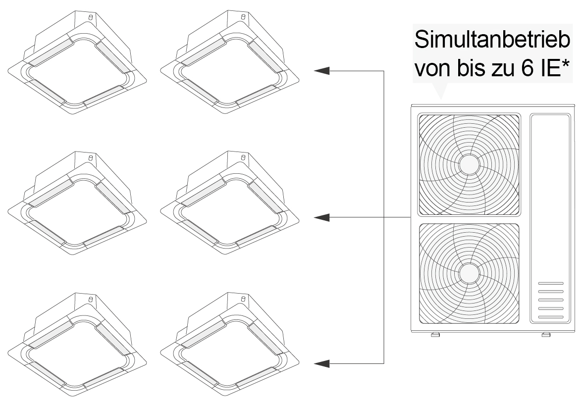 Je nach Modell ist der Simultanbetrieb von bis 6 Inneneinheiten möglich (*Modell: AUW250U6RZ8)