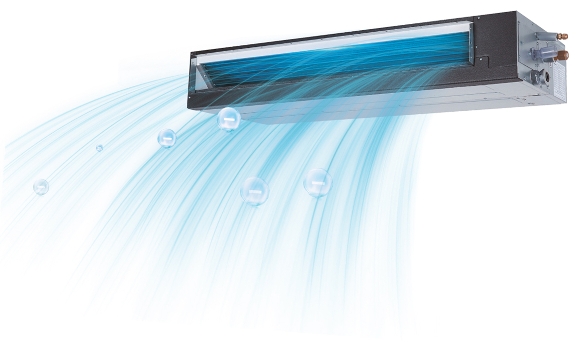 Der leise laufende, mehrstufige DC-Lüftermotor gewährleistet einen ruhigen Betrieb bei hoher Luftleistung. Ein besonderes Merkmal ist die automatische Anpassung der externen statischen Pressung bis 200 Pa während der Inbetriebnahme. Das Gerät wählt automatisch den optimalen Druck aus, um den tatsächlichen Widerstand im Kanal auszugleichen. Der Wärmeübertrager besteht aus einer hoch effizienten Einheit aus CU/Al-Materialien mit einer speziellen Kondenswasserablaufbeschichtung. Das elektronische Einspritzventil sorgt für einen sehr leisen Betrieb.
