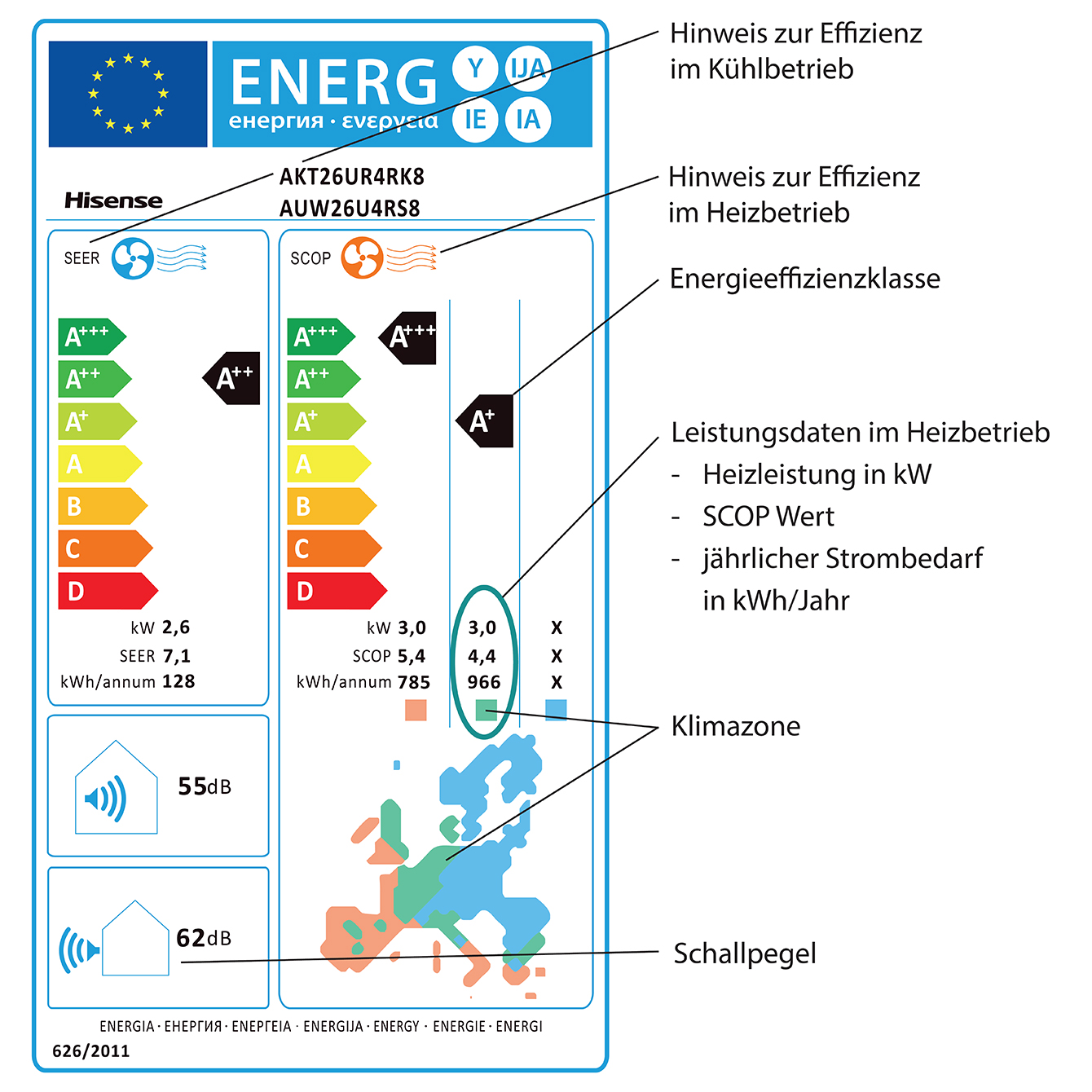 Der SCOP-Wert (Seasonal Coefficient of Performance) ist ein wichtiger Indikator für die Effizienz von Wärmepumpen im Heizbetrieb über eine ganze Heizperiode hinweg. Dieser Wert gibt an, wie viel Wärme eine Wärmepumpe im Verhältnis zur eingesetzten elektrischen Energie produzieren kann. Ein höherer SCOP-Wert bedeutet eine bessere Effizienz und somit niedrigere Betriebskosten. Hinweis: Hisense RAC Raumklimageräte weisen einen SCOP-Wert von 4,0 bis 5,1 auf!