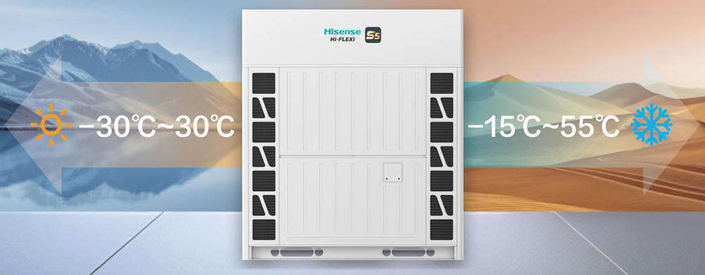 Die Hi-FLEXi S5 Serie überzeugt mit einem breiten Einsatzbereich: Heizbetrieb ist selbst bei extremen -30 °C möglich, während der Kühlbetrieb Temperaturen von bis zu 55 °C mühelos bewältigt. So ist stets höchste Effizienz gesichert – selbst unter extremen Wetterbedingungen.