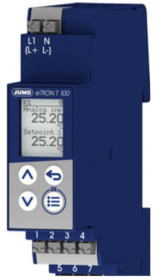 Das hintergrundbeleuchtete 64 × 80 Pixel LCD-Display zeigt Ist- und Sollwert, Schaltzustand des Relais sowie die Signale der digitalen Ein-/Ausgänge übersichtlich an. Die Klartextanzeige ist in vier Sprachen verfügbar (Deutsch, Englisch, Französisch, Spanisch) und das Display ist vollständig frei konfigurierbar, sodass auch alternative Einheiten und Darstellungen möglich sind. Eine individuell anlegbare Anwenderebene ermöglicht schnellen Zugriff auf die wichtigsten Parameter direkt am Gerät.