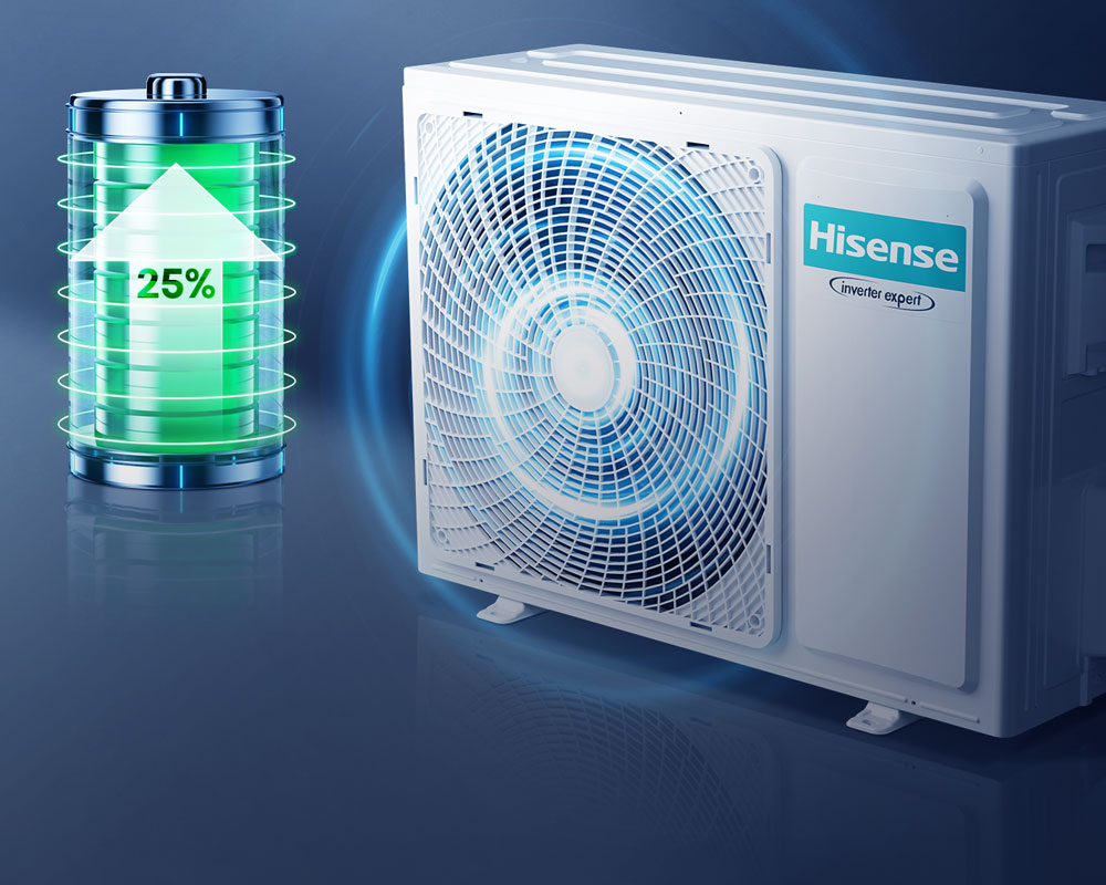 Die Hisense Inverter-Technologie setzt neue Maßstäbe in puncto Energieeffizienz und Komfort. Durch den Einsatz der innovativen 3D-Inverter-Technologie wird die Energieeffizienz um 25 % gesteigert, während die fortschrittliche TMS-Komfortregelung automatisch die Geschwindigkeit des Luftstroms, Temperatur und Luftfeuchtigkeit anpasst.