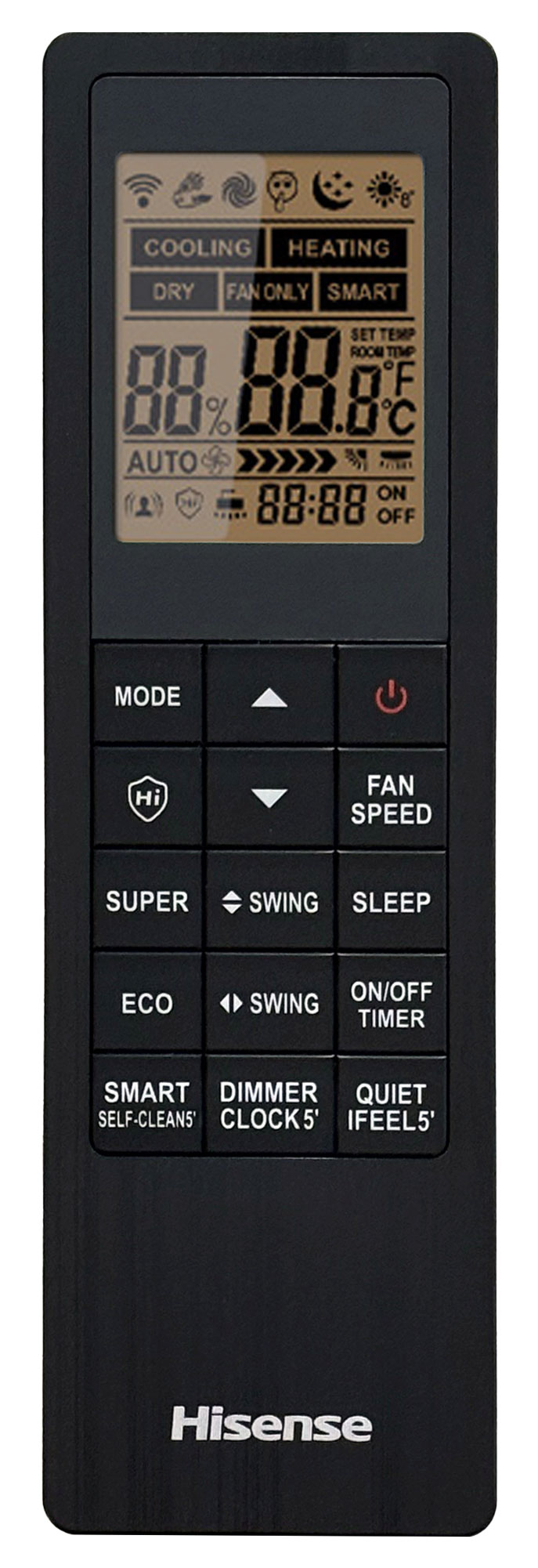 Infrarotfernbedienung RCH-RZY1 (schwarz) für Hisense RAC/PAC Mono- und Multisplitinnengeräte. Diese moderne Fernbedienung bietet ein großzügiges hintergrundbeleuchtetes LCD-Display. Das Batteriefach ist für zwei AAA-Batterien (1,5 V) ausgelegt, die im Lieferumfang enthalten sind. Mit ihrem zeitlosen Design und den klar angeordneten Funktionstasten ermöglicht die RCH-RZY1 eine einfache und intuitive Handhabung.