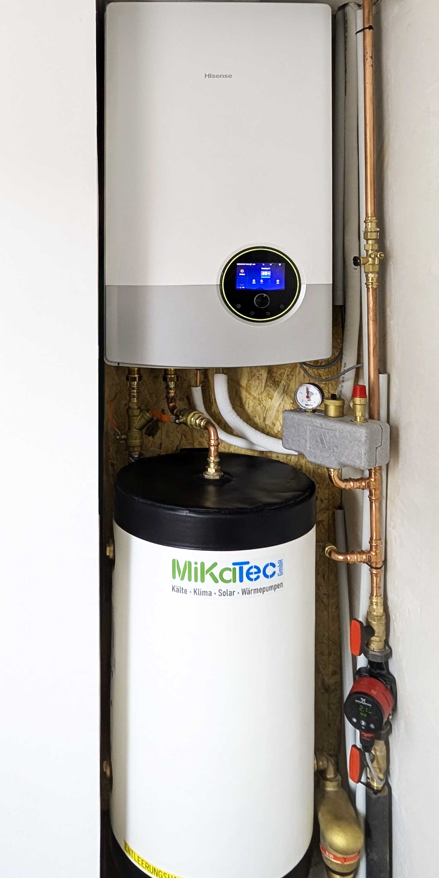 Die technische Umsetzung erfolgte in Kooperation mit dem Heizungsfachbetrieb MiKaTec sowie der in Wuppertal ansässigen CP-Kaut GmbH & Co., dem exklusiven Generalimporteur für Hisense-Klima- und Wärmepumpentechnik in Deutschland. Verwendet wurde die leistungsstarke Hi-Therma-Serie von Hisense, bestehend aus einer AHW-120 Außeneinheit sowie einer AHM-120 Inneneinheit mit einer Heizleistung von 12 kW – ausreichend für die Beheizung des gesamten Objekts.