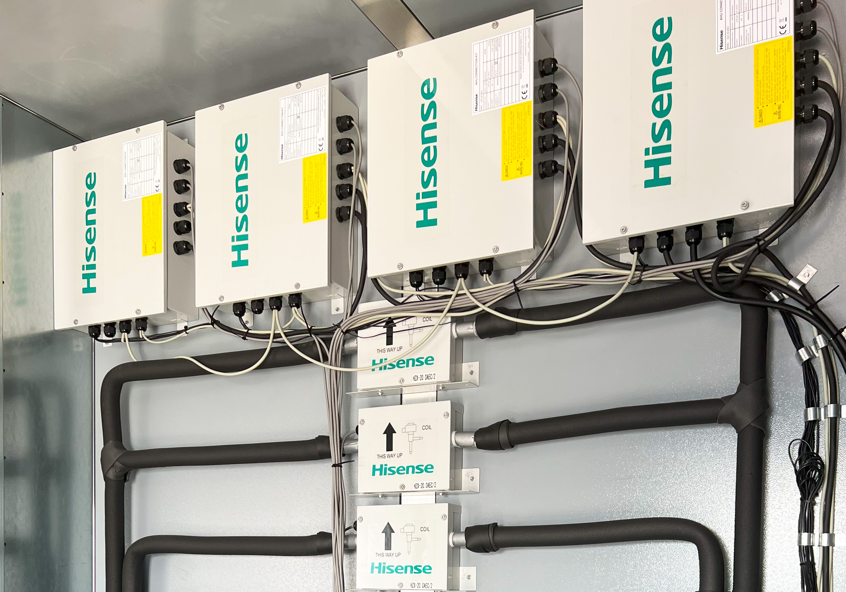 Die KKS Kälte & Klimasysteme GmbH hat mit diesem Projekt unter Beweis gestellt, wie zukunftsweisende Klimatechnik in einem industriellen Großprojekt erfolgreich implementiert wird. Mit einer Gesamtleistung von 4.253 kW und einer versorgten Luftmenge von rund 1.088.500 m³/h wurde hier eines der größten in Europa realisierten Hisense VRF-Systeme installiert. Insgesamt kamen 80 Außengeräte unterschiedlicher Leistungsklassen (AVWT-190HKSS bis AVWT-272HKSS) sowie 80 HZX-30.0 AEC-Steuereinheiten zum Einsatz, die eine zonengenaue Regelung ermöglichen.